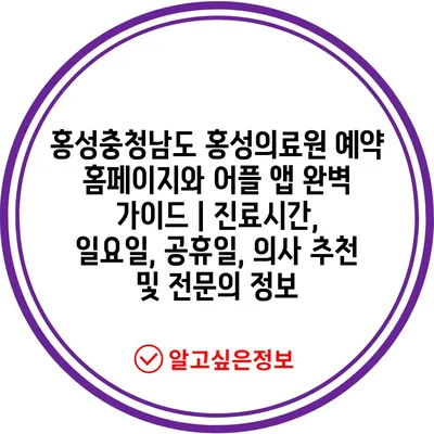 홍성충청남도 홍성의료원 예약 홈페이지와 어플 앱 완벽 가이드 | 진료시간, 일요일, 공휴일, 의사 추천 및 전문의 정보