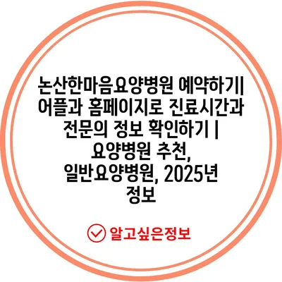 논산한마음요양병원 예약하기| 어플과 홈페이지로 진료시간과 전연락 정보 확인하기 | 요양병원 추천, 일반요양병원, 2025년 정보 에 대해 자주 묻는 질문 TOP 5