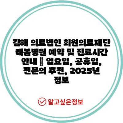 김해 의료법인 희원의료재단 래봄병원 예약 및 진료시간 공지 | 일요일, 공휴일, 전연락 추천, 2025년 정보 에 대해 자주 묻는 질문 TOP 5