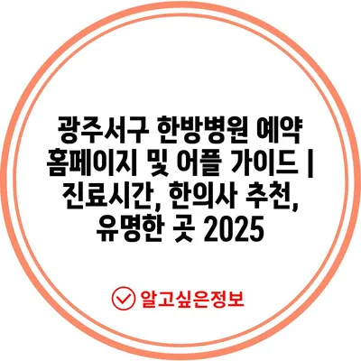 ✅ 광주서구 한방병원의 진료시간과 예약 방법을 손쉽게 알아보세요.