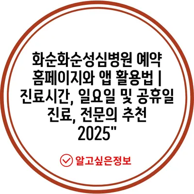 화순화순성심병원 예약 홈페이지와 앱 활용법 | 진료시간, 일요일 및 공휴일 진료, 전연락 추천 2025