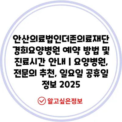 안산의료법인더존의료재단 경희요양병원 예약 방법 및 진료시간 공지 | 요양병원, 전연락 추천, 일요일 공휴일 정보 2025 에 대해 자주 묻는 질문 TOP 5
