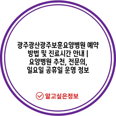 광주광산광주보훈요양병원 예약 방법 및 진료시간 공지 | 요양병원 추천, 전연락, 일요일 공휴일 운영 정보 에 대해 자주 묻는 질문 TOP 5