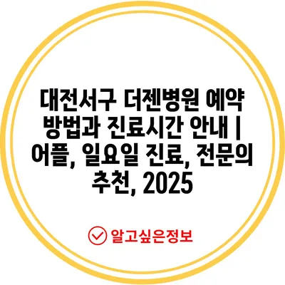 대전서구 더젠병원 예약 방법과 진료시간 공지 | 어플, 일요일 진료, 전연락 추천, 2025 에 대해 자주 묻는 질문 TOP 5