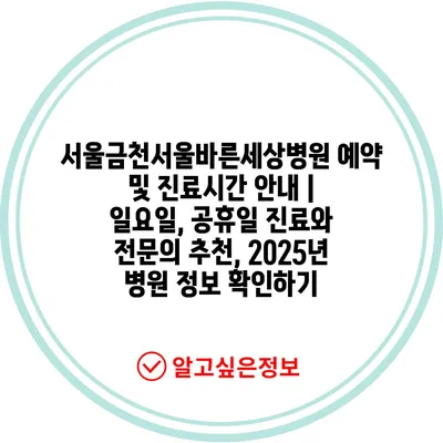 서울금천서울바른세상병원 예약 및 진료시간 공지 | 일요일, 공휴일 진료와 전연락 추천, 2025년 병원 정보 확인하기 에 대해 자주 묻는 질문 TOP 5