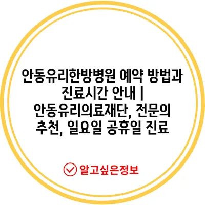 ✅ 안동유리한방병원의 진료시간과 예약 절차를 자세히 알아보세요.