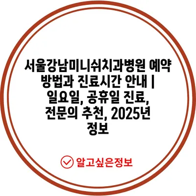 서울강남미니쉬치과병원 예약 방법과 진료시간 공지 | 일요일, 공휴일 진료, 전연락 추천, 2025년 정보 에 대해 자주 묻는 질문 TOP 5