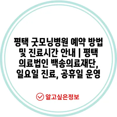 평택 굿모닝병원 예약 방법 및 진료시간 공지 | 평택 의료법인 백송의료재단, 일요일 진료, 공휴일 운영 에 대해 자주 묻는 질문 TOP 5