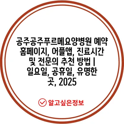 공주공주푸르메요양병원 예약 홈페이지, 어플앱, 진료시간 및 전연락 추천 방법 | 일요일, 공휴일, 유명한 곳, 2025에 대해 자주 묻는 질문 TOP 5