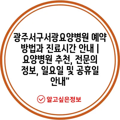 ✅ 광주서구서광요양병원의 자세한 예약 방법과 운영시간을 알아보세요.