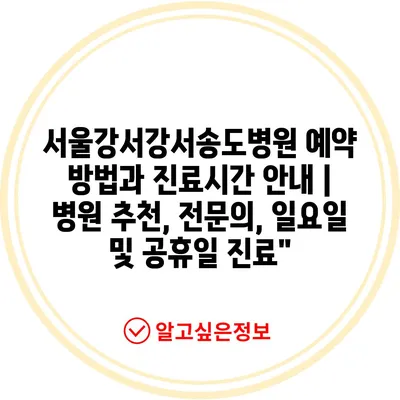 서울강서강서송도병원 예약 방법과 진료시간 안내 | 병원 추천, 전문의, 일요일 및 공휴일 진료”