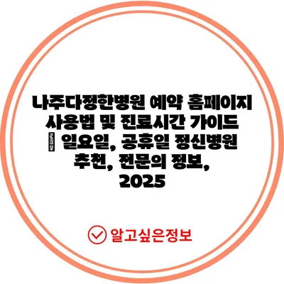 나주다정한병원 예약 홈페이지 사용법 및 진료시간 설명서 | 일요일, 공휴일 정신병원 추천, 전연락 정보, 2025에 대해 자주 묻는 질문 TOP 5
