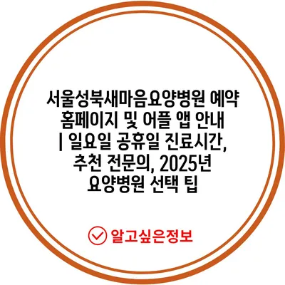 서울성북새마음요양병원 예약 홈페이지 및 어플 앱 공지 | 일요일 공휴일 진료시간, 추천 전연락, 2025년 요양병원 선택 팁 에 대해 자주 묻는 질문 TOP 5