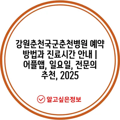 강원춘천국군춘천병원 예약 방법과 진료시간 공지 | 어플앱, 일요일, 전연락 추천, 2025 에 대해 자주 묻는 질문 TOP 5