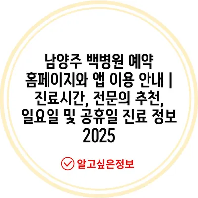 ✅ 남양주 백병원에서의 진료 예약 방법을 알아보세요.