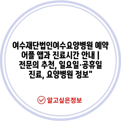 여수재단법인여수요양병원 예약 어플 앱과 진료시간 공지 | 전연락 추천, 일요일·공휴일 진료, 요양병원 정보에 대해 자주 묻는 질문 TOP 5