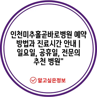 ✅ 인천미추홀곧바로병원의 진료시간과 예약 방법을 지금 바로 알아보세요!