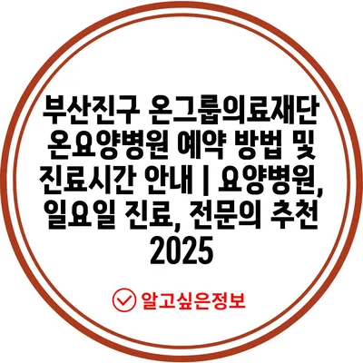부산진구 온그룹의료재단 온요양병원 예약 방법 및 진료시간 공지 | 요양병원, 일요일 진료, 전연락 추천 2025 에 대해 자주 묻는 질문 TOP 5