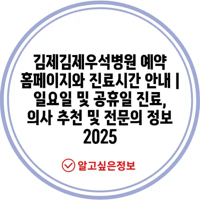 김제김제우석병원 예약 홈페이지와 진료시간 공지 | 일요일 및 공휴일 진료, 의사 추천 및 전연락 정보 2025에 대해 자주 묻는 질문 TOP 5