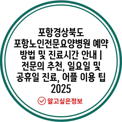 포항경상북도 포항노인전문요양병원 예약 방법 및 진료시간 공지 | 전연락 추천, 일요일 및 공휴일 진료, 어플 이용 팁 2025 에 대해 자주 묻는 질문 TOP 5