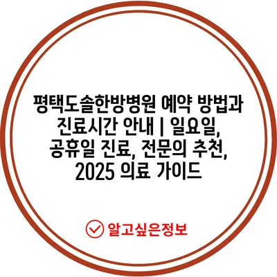 평택도솔한방병원 예약 방법과 진료시간 공지 | 일요일, 공휴일 진료, 전연락 추천, 2025 의료 설명서 에 대해 자주 묻는 질문 TOP 5