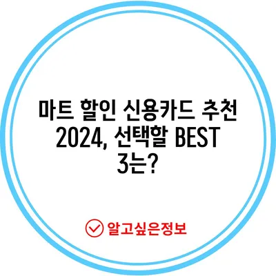 마트 할인 신용카드 추천 BEST 3로 생활비를 절감하고 다양한 혜택을 누리는 방법을 알아보세요.
