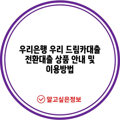 우리은행 우리 드림카대출 전환대출 상품 안내 및 이용방법