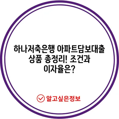 💡 하나저축은행 아파트담보대출의 모든 조건과 이자율을 확인해 보세요. 💡