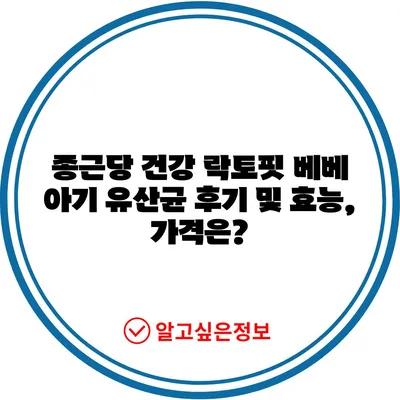 아기의 건강은 모든 엄마들에게 가장 큰 관심사 중 하나입니다. 특히 아기가 소화와 면역력을 잘 유지하는 것은 부모의 가장 큰 바람입니다. 아기 유산균은 그러한 역할을 톡톡히 해낼 수 있는 중요한 제품입니다. 이번 포스팅에서는 종근당 건강 락토핏 베베 아기 유산균 제품에 대한 후기, 효능 및 가격을 깊이 있게 살펴보겠습니다.