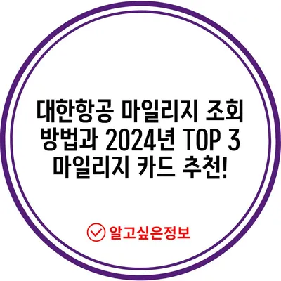 대한항공 마일리지 조회 방법과 2024년 TOP 3 마일리지 카드 추천!