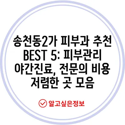 💡 송천동2가 피부과의 밤 진료 가능 여부와 가격을 알아보세요. 💡