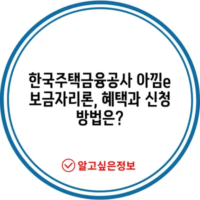 💡 한국주택금융공사 아낌e 보금자리론의 모든 혜택을 자세히 알아보세요. 💡