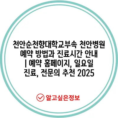 천안순천향대학교부속 천안병원 예약 방법과 진료시간 공지 | 예약 홈페이지, 일요일 진료, 전연락 추천 2025에 대해 알아보겠습니다.