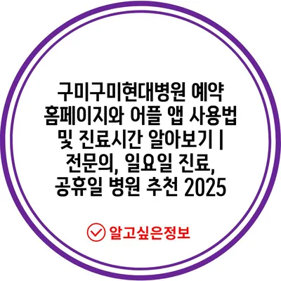 구미구미현대병원 예약 홈페이지와 어플 앱 사용법 및 진료시간 알아보기 | 전연락, 일요일 진료, 공휴일 병원 추천 2025에 대해 알아보겠습니다.