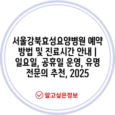 서울강북효성요양병원 예약 방법 및 진료시간 공지 | 일요일, 공휴일 운영, 유명 전연락 추천, 2025