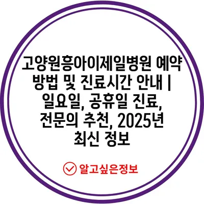 고양원흥아이제일병원 예약 방법 및 진료시간 공지 | 일요일, 공휴일 진료, 전연락 추천, 2025년 최신 정보 에 대해 자주 묻는 질문 TOP 5