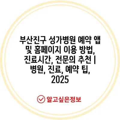 부산진구 성가병원 예약 앱 및 홈페이지 이용 방법, 진료시간, 전연락 추천 | 병원, 진료, 예약 팁, 2025에 대해 소개합니다.