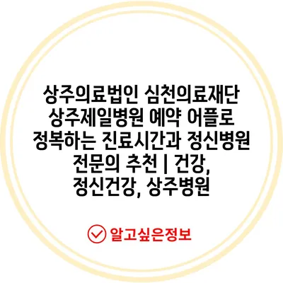 상주의료법인 심천의료재단 상주제일병원 예약 어플로 정복하는 진료시간과 정신병원 전연락 추천 | 건강, 정신건강, 상주병원 에 대해 자주 묻는 질문 TOP 5
