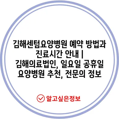 ✅ 김해센텀요양병원의 예약 절차와 진료 시간을 쉽게 알아보세요.