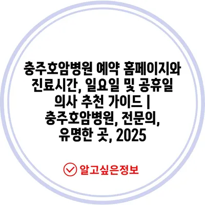충주호암병원 예약 홈페이지와 진료시간, 일요일 및 공휴일 의사 추천 설명서 | 충주호암병원, 전연락, 유명한 곳, 2025 에 대해 자주 묻는 질문 TOP 5