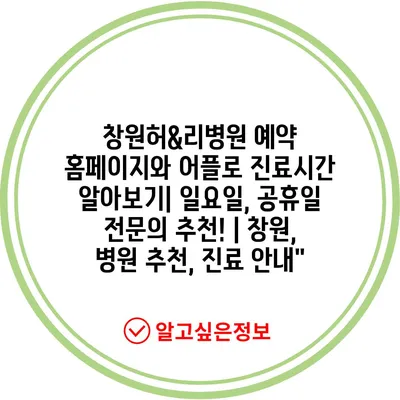 ✅ 창원허&리병원의 진료시간과 예약 방법을 지금 바로 알아보세요.