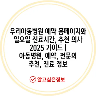 우리아동병원 예약 홈페이지와 일요일 진료시간, 추천 의사 2025 설명서에 대해 알려제공합니다.