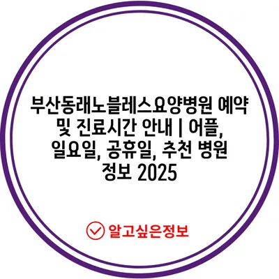 부산동래노블레스요양병원 예약 및 진료시간 공지 | 어플, 일요일, 공휴일, 추천 병원 정보 2025
