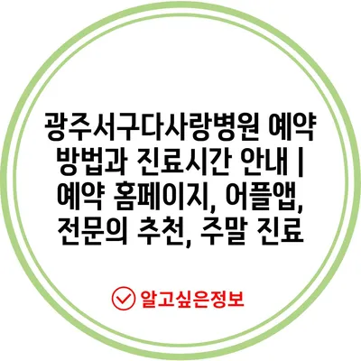 광주서구다사랑병원 예약 방법과 진료시간 안내 | 예약 홈페이지, 어플앱, 전문의 추천, 주말 진료