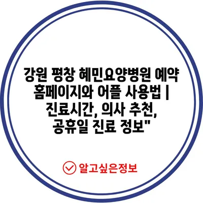 강원 평창 혜민요양병원 예약 홈페이지와 어플 사용법 | 진료시간, 의사 추천, 공휴일 진료 정보에 대해 자주 묻는 질문 TOP 5