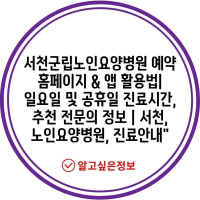 ✅ 서천군립노인요양병원의 예약 방법을 지금 바로 알아보세요.