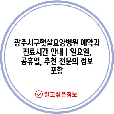 광주서구햇살요양병원 예약과 진료시간 안내 | 일요일, 공휴일, 추천 전문의 정보 포함