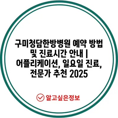구미청담한방병원 예약 방법 및 진료시간 공지 | 어플리케이션, 일요일 진료, 전문가 추천 2025