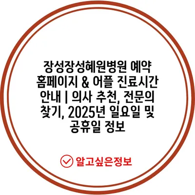 장성장성혜원병원 예약 홈페이지 & 어플 진료시간 공지 | 의사 추천, 전연락 찾기, 2025년 일요일 및 공휴일 정보